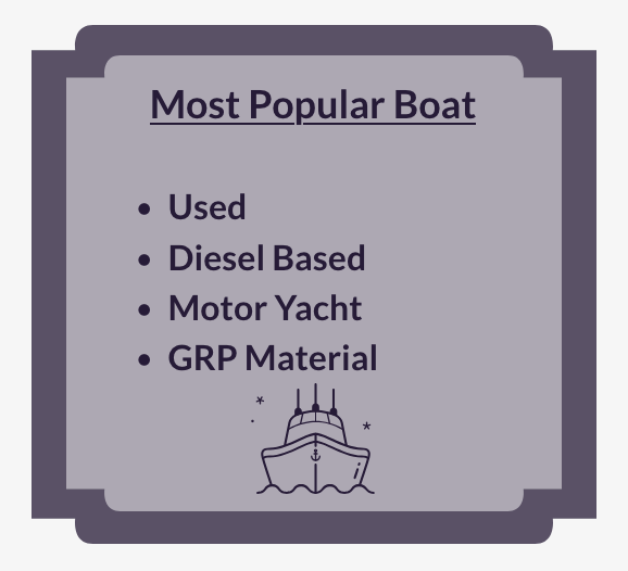 While many boats fell under multiple labels within a category, it became apparent that the most popular type of boat is a used motor yacht that uses diesel and is made from glass reinforced plastic (GRP).
